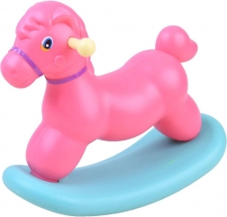 Privlačen plastičen gugalni konjiček s širokim sedlom in naslonoma za roke za stabilne in igrive trenutke.