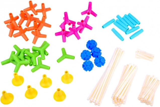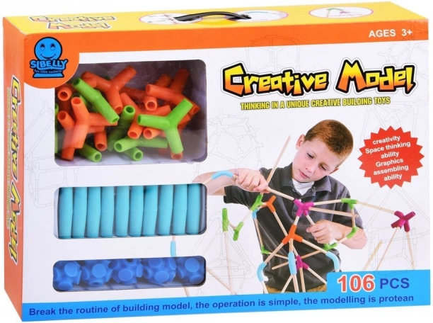 Z 106 kosi lahko otroci gradijo neskončno število konstrukcij, ki spodbujajo njihovo kreativnost in prostorsko predstavnost.