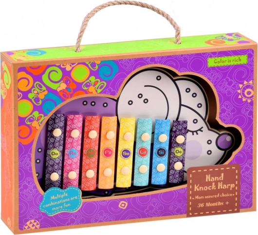 Prvi cimbali za vašega otroka v prikupni obliki miške, ki bodo očarali vsakega malega glasbenika. Plošča cimbal je oblikovana kot miška in vsebuje kovinske ploščice, na katerih je mogoče zaigrati lestvico do, re, mi, fa, so, la, si, do. Izdelano iz kakovostne plastike, na spodnji strani pa je prostor za plastično paličico.
