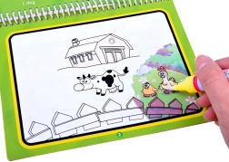 Vodna pobarvanka je odlična igrača za male umetnike, ki radi slikajo živali in dinozavre. Celoten princip je v tem, da otroci s pomočjo vodnega peresa barvajo kartice, in ko se te posušijo, slike izginejo in jih lahko znova pobarvamo. Ta pobarvanka je večkratno uporabna, kar spodbuja razvoj ustvarjalnosti.