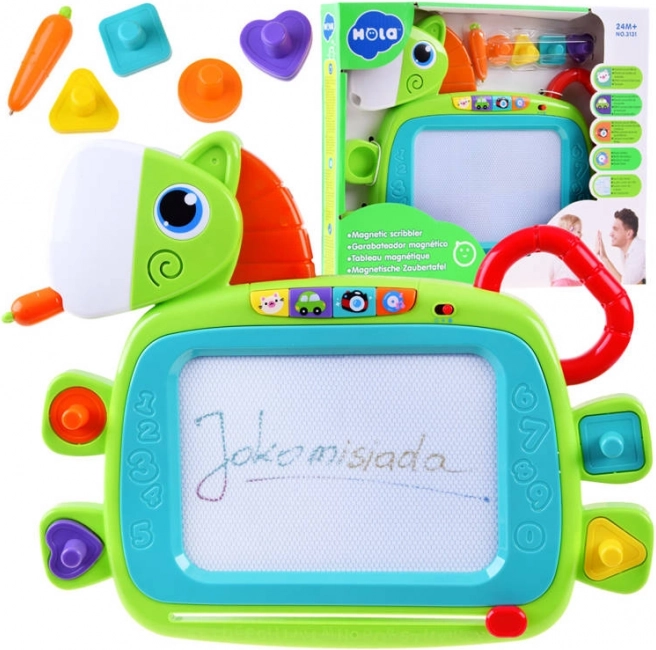 Tabla v obliki konjička je opremljena s svetlobnimi in zvočnimi učinki, ki pritegnejo vsakega otroka.
