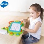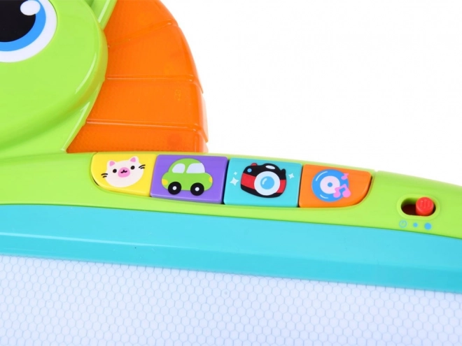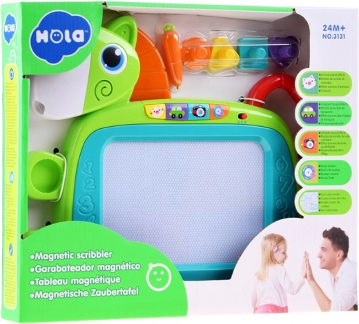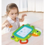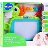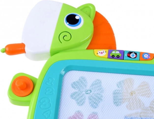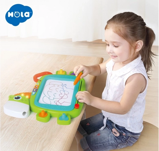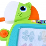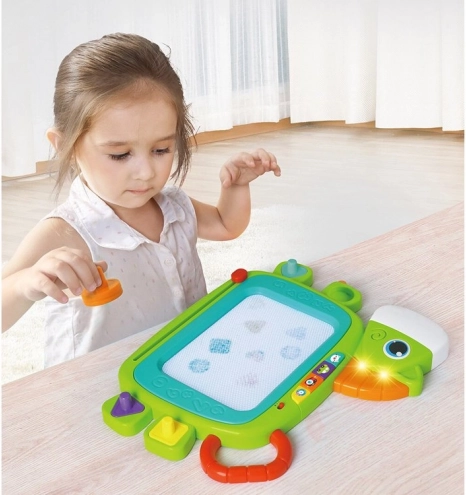 Ta barvna magična tabla ima veliko odličnih funkcij, ki spodbujajo ustvarjalnost in razvoj fine motorike otrok. Na njej lahko rišete, pišete s pisalom ali ustvarjate vzorce s pomočjo žigov. Po končani risbi je sliko mogoče zlahka izbrisati z drsnim mehanizmom za brisanje. Interaktivno igro spremljajo svetlobni in zvočni učinki: