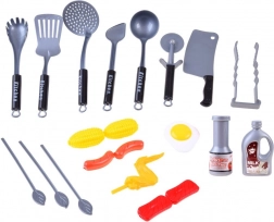 Ta kuhinjski komplet pomaga otrokom razvijati domišljijo, kreativnost in jih uči osnov kuhanja ter gospodinjskih opravil.
