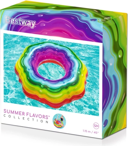 Uživajte v neskončni vodni zabavi z velikim napihljivim obročem podjetja Bestway. Ta obroč s premerom 115 cm je narejen iz trpežnega PVC, ki je odporen na UV sevanje in morsko vodo. Oblika obroča zagotavlja udobno in brezskrbno lenarjenje ob vodi.