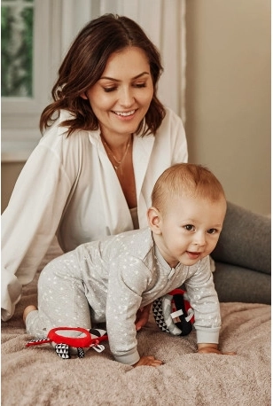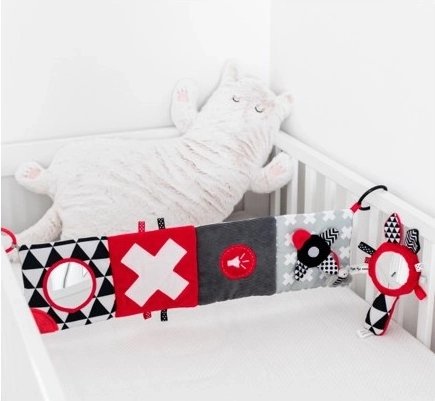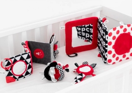 Kontrastna piskajoča ročka z ogledalcem iz kolekcije SENSORY je namenjena najmlajšim otrokom. Zaradi praktične oblike jo je enostavno prijeti. Ročka ima piskajoče elemente, ogledalce in blago s trakovi. Senzorične barve spodbujajo razvoj otrokovega zaznavanja. Več informacij o izdelku najdete v tem videu: https://www.youtube.com/watch?v=TiuOPH8SJAk&list=PLyuCTn7E_UX4T16PNxfqFjffk4yO1xNXC&index=6 Zakaj so senzorične igrače tako pomembne? Otrokov vid je po rojstvu najmanj razvit čut. Tema, ki prevladuje v maternici, ne omogoča, da bi se vid v prenatalnem obdobju v celoti razvil. Po rojstvu je otrokovo videnje zamegljeno in megleno. Otrok vidi le obrise na razdalji 20–30 cm, velike oblike in elemente iz okolja. Približno po enem mesecu začne zaznavati barve, sprva rdečo in črno. Po približno treh mesecih začne opažati tudi druge izrazite barve. Okoli šestega meseca začne videti podrobnosti na slikah in vidi veliko jasneje. V dvanajstem mesecu življenja je otrokovo videnje že v celoti razvito kot pri odraslem in postane odlično orodje za odkrivanje sveta. Senzorične igrače iz nove kolekcije SENSORY tako pomagajo spodbujati otrokovo vidno zaznavanje in urijo sposobnost osredotočanja že od prvih tednov življenja. O kolekciji SENSORY: Senzorična kolekcija igrač je bila razvita za otroke do enega leta. V tem obdobju pride do najpomembnejših sprememb v psihomotoričnem razvoju otroka. Senzorične igrače so odgovor na aktualni trend na trgu, ki se osredotoča na podporo razvoja skozi igro, pri čemer lahko starš skupaj z otrokom spodbuja razvoj vida, vadi sposobnost osredotočanja na predmet, usmerjanja in sledenja predmetom z očmi ter vadi spretnost in koordinacijo. Navodila za uporabo: Ohranite v čistoči. Navodila za vzdrževanje so navedena na všivni etiketi. Opozorilo! Pomembno za zdravje in varnost vašega otroka! Pred vsako uporabo izdelek temeljito preverite. Ob prvih znakih poškodbe ali obrabe izdelek takoj zavrzite in ga ne uporabljajte več. Embalažo odprite z energičnim raztrganjem folije brez uporabe škarij. Opozorilo! Plastično embalažo (pakiranje) hranite izven dosega otrok, da preprečite možnost zadušitve z embalažo. Plišasta ročka ustreza zahtevam: Direktiva Evropskega parlamenta in Sveta 2009/48/ES o varnosti igrač EN 71 - 1 Varnost igrač - 1. del: Mehanske in fizikalne lastnosti EN 71 - 2 Varnost igrač - 2. del: Vnetljivost EN 71 - 3 Varnost igrač - 3. del: Migracija določenih elementov