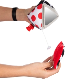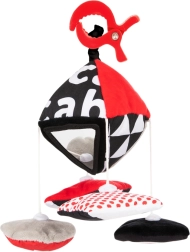 Črno-beli vzorci z rdečimi poudarki ter dvojica varnih ogledalc naravno pritegnejo otrokovo pozornost in podpirajo osredotočenost.