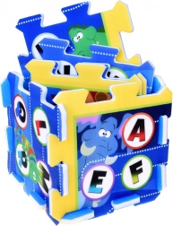 Vsak košček nosi črko in veselo žival, kar olajša prepoznavanje in pomnjenje črk, barv ter oblik.