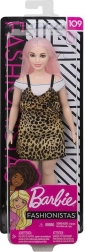Barbie Fashionistas punčka z rožnatimi lasmi in leopardjimi oblekami