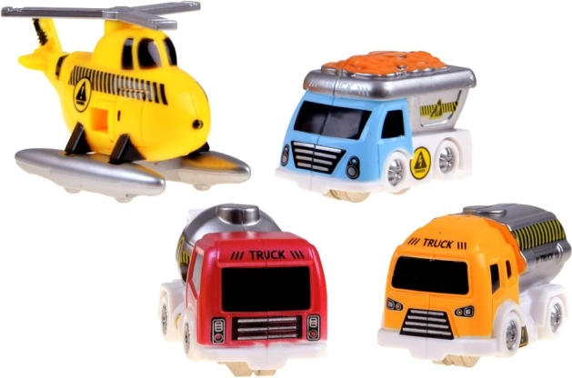 Mehanska gradbena steza z avtomobilčki in helikopterjem