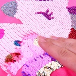 Dvostranske bleščice omogočajo spremembo barve in blazini dodajo igriv element.