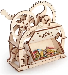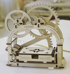 Mehanska škatlica UGEARS združuje tradicionalni material in pametno gibanje. Zahvaljujoč domiselnemu sistemu zobnikov je dovolj pritisniti stranski vzvod in pokrov se z prijetnim klikom odpre. V paketu boste našli dve sprednji različici panela – z izrezom in brez – glede na predvideno uporabo.