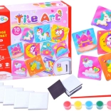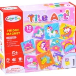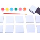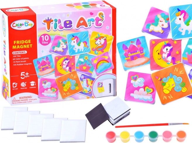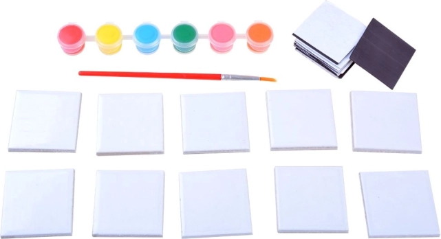 Komplet vsebuje vse potrebne komponente za izdelavo desetih magnetov – od ploščic do barv in čopiča. Otroci se lahko takoj potopijo v ustvarjalno dejavnost.