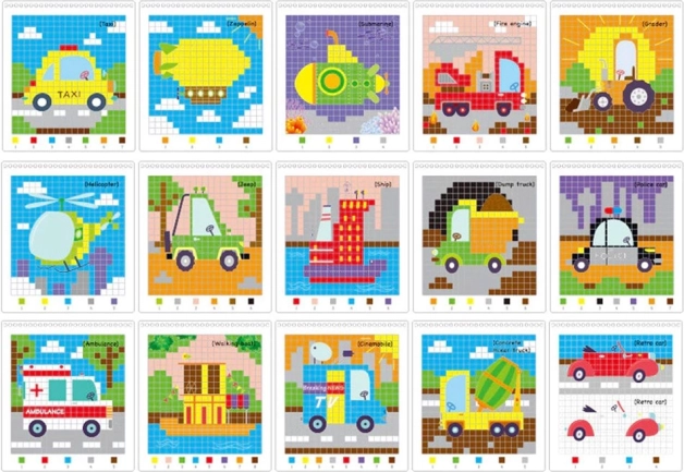 Odkrijte svet ustvarjalnosti z našim izobraževalnim setom pobarvank. Pikslaste slike se razkrivajo z vsakim naslednjim pobarvanim kvadratkom, kar pomaga razvijati ne le fino motoriko, temveč tudi logično razmišljanje in sposobnost koncentracije pri otrocih.