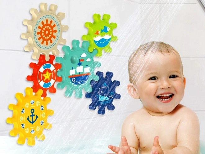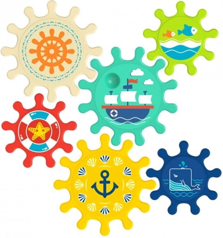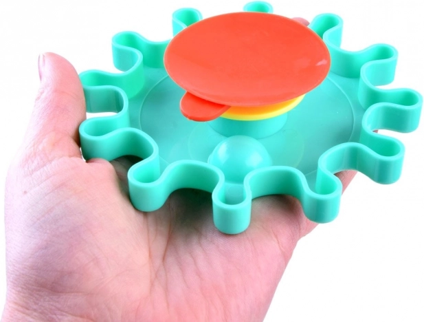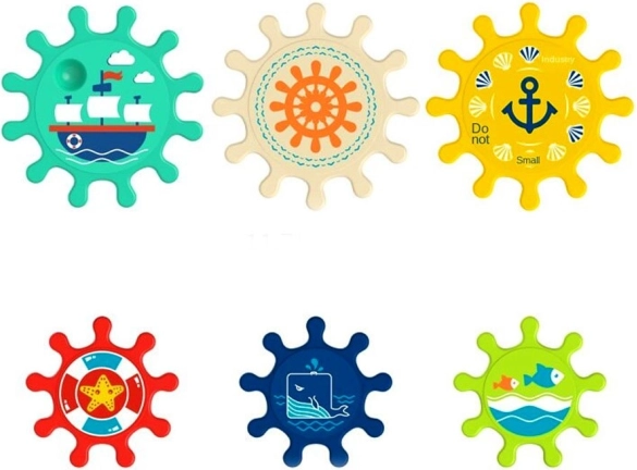 Obogatite čas kopanja z odlično zabavo s to zbirko barvnih zobatih zobnikov, ki jih lahko enostavno pritrdite na steno kadi ali tuša. Otroci obožujejo vrtenje zobnikov in opazovanje, kako se celotna konstrukcija premika, kar pomaga pri razvoju fine motorike in logičnega razmišljanja.