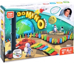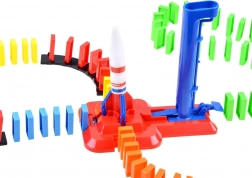 Vesoljski domino je barvita plastična konstrukcija z raketnim motivom, namenjena zabavi in kreativnemu razvoju otrok.