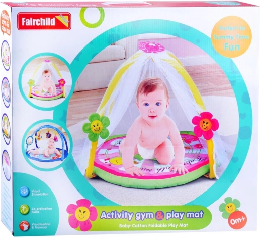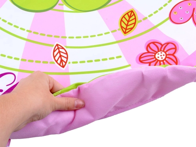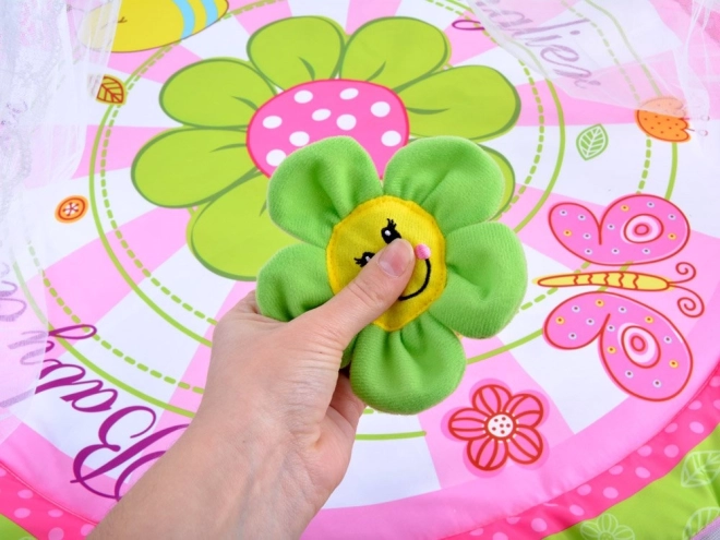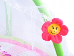 Otroška igralna podloga je zasnovana tako, da ustvarja varno in udobno mesto za vašega otroka. Njene žive barve in mehak material so idealni za vsakodnevno igranje ali sprostitev. Podloga je opremljena z obroči s cvetovi in mrežo proti komarjem, ki varuje pred insekti ter povečuje privlačnost za otroke.
