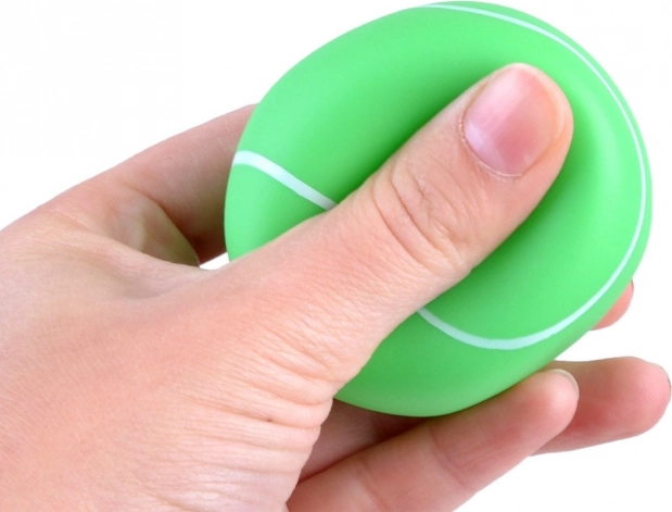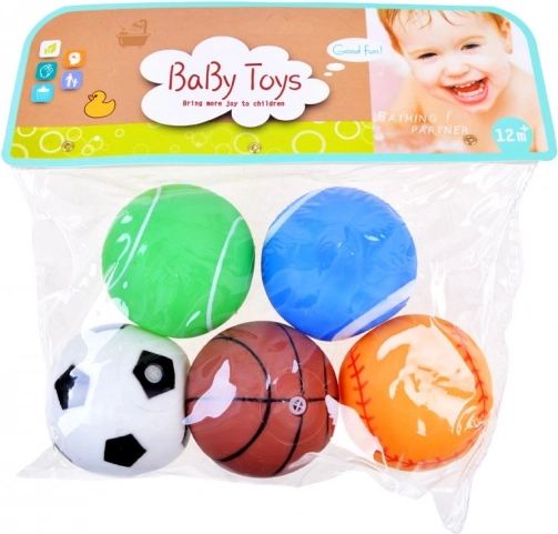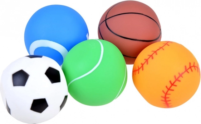 Ta raznolik komplet vsebuje pet barvitih gumijastih žogic, navdihnjenih s priljubljenimi športi: nogomet, košarka, tenis, baseball in ameriški nogomet. Zahvaljujoč vgrajenemu piskajočemu vložku se ob stisku oglasi zabaven zvok, ki spodbuja otroško radovednost in razvija fino motoriko.