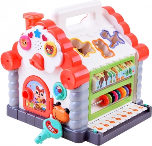 Ta raziskovalna hišica je izdelana iz kakovostne, trpežne plastike v privlačnih barvah. Ponuja bogate interaktivne funkcije: po vstavitvi pravilnega koščka se oglasi zvok ustrezne živali, mini klaviatura predvaja lestvico in 7 priljubljenih melodij, abaka pa podpira prve korake v štetju. Zahvaljujoč ključku in vratcem otroci vadijo fino motoriko in koordinacijo oko–roka.
