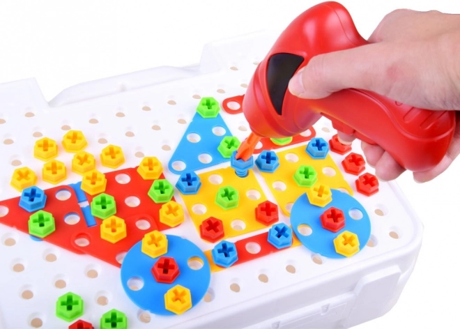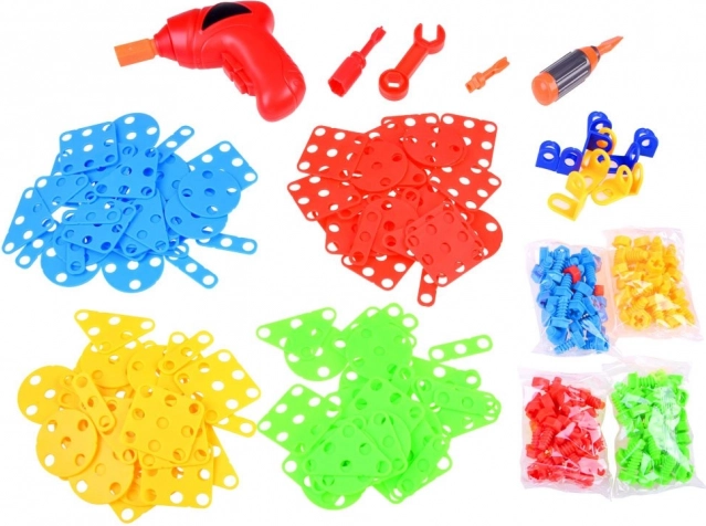 V kompletu je otroški električni vrtalnik na 2× AA bateriji, izvijač in ključ, ki omogočajo pravo vijačenje in odvijačenje konstrukcij. Tako otroci vadijo fino motoriko, koordinacijo oko–roka in potrpežljivost ter hkrati razvijajo ustvarjalnost in tehnično razmišljanje.