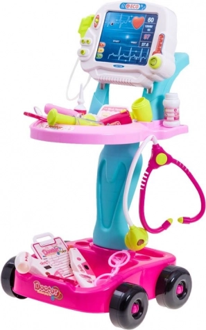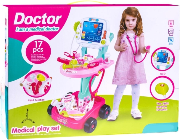 Otroški zdravniški voziček z bogatim kompletom orodij za igro zdravnika spodbuja ustvarjalnost, učenje in socialne veščine. Vključuje panel z svetlobnimi in zvočnimi učinki, stetoskop, termometer, tlakomera in drugo opremo. Zahvaljujoč kolesom je voziček mobilen in ga je mogoče zlahka premikati.