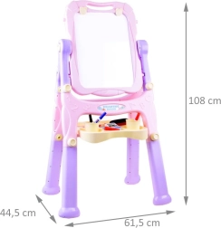 Zaradi trpežne plastične konstrukcije v pastelnih barvah je tabla lahka, stabilna in preprosta za čiščenje. Odlično razvija kreativnost, zbranost in ročne spretnosti.