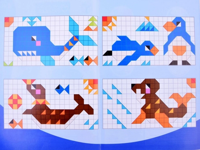Set vključuje 248+ barvnih kock za ustvarjanje pisanih mozaikov. Otroci lahko sestavljajo motive po predlogah (npr. živali ali oceanskih prizorov) ali si izmišljajo lastne slike.