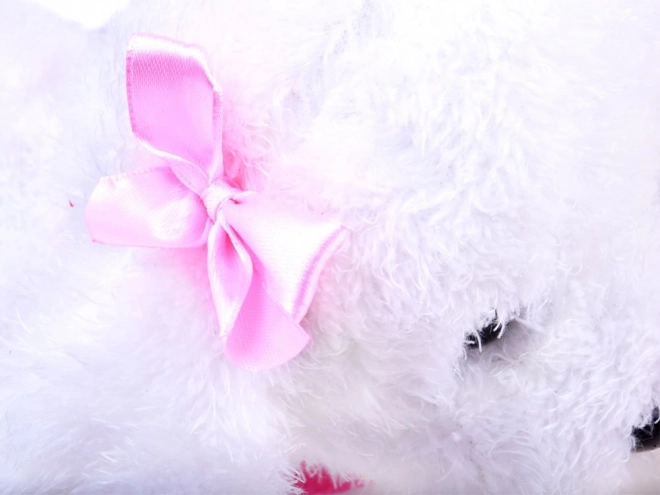 Zaradi mehkega in prijetnega materiala je kužek odličen za crkljanje. Pisana ovratnica in pentljice igrači dodajo prisrčen videz, ki ga bodo otroci hitro vzljubili. Idealno za igro doma na ravnih površinah.