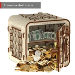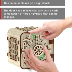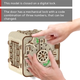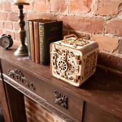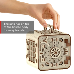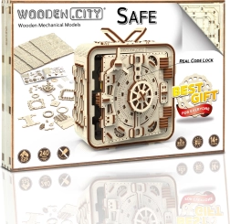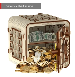 3D sestavljanka sef znamke Wooden City je idealno darilo za ljubitelje ugank in lepega oblikovanja. Ta funkcionalni model posnema mehanizem bančnega sefa s troštevilčno kombinacijo, ki jo lahko kadarkoli spremenite. Sef vsebuje tudi skrivno funkcijo, ki vam pomaga v primeru pozabljene kode. Videz dopolnjuje ročaj za enostavno prenašanje in poličkast prostor v notranjosti.