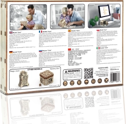 Uživajte v sestavljanju funkcionalnega sefa brez potrebe po lepilu ali orodju! Modeli Wooden City so izdelani iz ekoloških lesenih materialov in zagotavljajo dolge ure zabave. Od blizu spoznajte prenose, gumijaste motorje, zobnike in druge komponente.