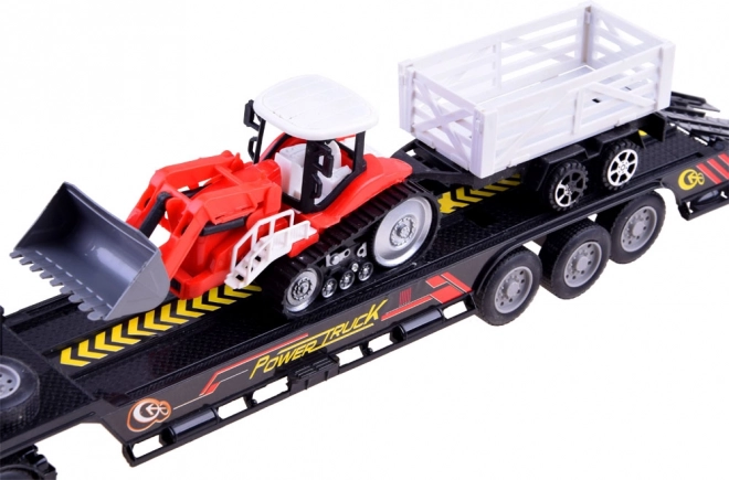 Vlačilec z nizkopodno polprikolico varno prepelje traktor s prikolico. Kombinacija za dolge ure ustvarjalne igre.