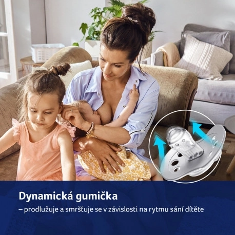 Dinamičen cucekIzdelan iz nehomogene silikonske plasti, ki omogoča krčenje in raztezanje med sesanjem; simetrična oblika cucka je podobna materini bradavici. Številka 1 med dudkiPotrjeno v potrošniški anketi, izvedeni na skupini 700 mater otrok, starih 0–24 mesecev, GfK, november 2018. Silikonski cucekIzdelan iz trpežnega, nežnega, visokokakovostnega silikona, brez okusa in vonja. Oblikovan ščitNjegova oblika omogoča otroku enostavno dihanje skozi nos; uporabljeni so varni materiali brez bisfenola A. Odprtine v ščituOmogočajo prosto kroženje zraka in tako preprečujejo draženje občutljive otroške kože. Udoben ročaj Vsebina kompleta:2x dinamični dudek LOVI 2x plastična škatlica za dudek 1x higienska kapsula za shranjevanje dudka Navodila za uporabo:Pred prvo uporabo dudek iz higienskih razlogov sterilizirajte v vreli vodi približno 5 minut. Po ohladitvi iztisnite preostalo vodo iz dudka. Pred vsako uporabo dudek operite v topli vodi. Ne uporabljajte nobenih kemičnih razkužil! Visoke koncentracije takih sredstev lahko poškodujejo plastične dele dudka. Nikoli ne namakajte dudka v sladkih snoveh ali zdravilih – otroka izpostavljate nevarnosti poškodbe zobne sklenine. Dudek uporabljajte največ 1–2 meseca, nato ga iz higienskih in varnostnih razlogov zamenjajte z novim. Če otrok potisne dudek v usta, NE PANICARITE – dudek je zasnovan tako, da ga otrok ne more pogoltniti, in ga lahko v takih primerih varno odstranite. Dudek odstranjujte čim bolj previdno. Dudek shranjujte v čistem, suhem in zaprtem etuiju. Ne priporočamo uporabe dudka pri otroku, starejšem od 3 let. Opozorilo! Pomembno za zdravje in varnost vašega otroka! Pred vsakim dajanjem otroku preverite stanje dudka. Bodite posebej pozorni na dudek, ko otroku zrastejo prvi zobki. Preverite kakovost cucka s temeljitim raztezanjem v vse smeri. Ob prvih znakih poškodbe dudek takoj zavrzite in ga ne uporabljajte več. Uporabljajte le takšne držala za dudke, ki ustrezajo zahtevam standarda EN 12586. Nikoli ne pritrdite dudka na različne vrvice, vezalke ali trakove oblačil. Otrok se lahko zaduši. Ne puščajte dudka na neposredni sončni svetlobi, v bližini toplotnega vira ali v razkužilnih sredstvih dlje, kot je priporočeno – to lahko povzroči oslabenje cucka. Odstranjen pokrov hranite izven dosega otroka – s tem preprečite morebitno zadušitev.Silikonski dudek ustreza zahtevam:Smernica Evropskega parlamenta in Sveta 2001/95/ES o splošni varnosti izdelkov,EN 1400 – 1 Izdelki za nego otrok – Dudki za dojenčke in malčke – Del 1: Splošne varnostne zahteve in informacije o izdelku,EN 1400 – 2 Izdelki za nego otrok – Dudki za dojenčke in malčke – Del 2: Mehanske zahteve in preskusi,EN 1400 – 3 Izdelki za nego otrok – Dudki za dojenčke in malčke – Del 3: Kemične zahteve in preskusi.