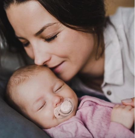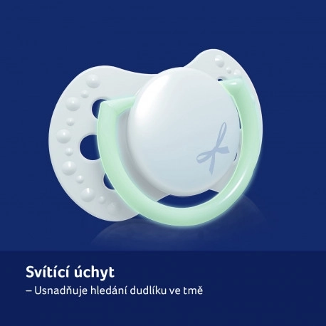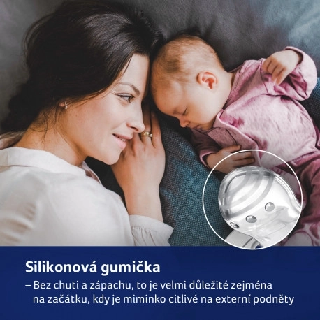 Izdelana iz plasti silikona za prilagodljivost ritmu otrokovega sesanja. Simetrična oblika spominja na materino bradavico in omogoča enostavno vstavljanje v usta.
