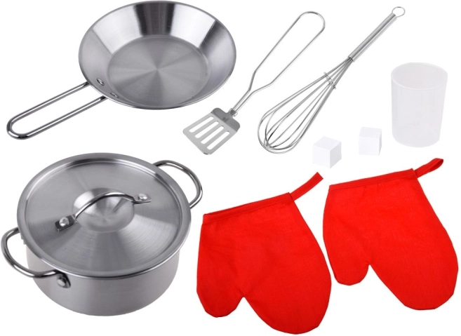 - Kuhinjske posode kot so lonec, ponev, lopatka, metlica in drugo