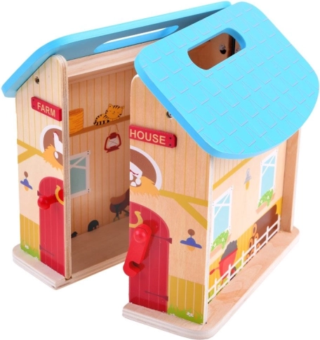 Lesena kmetija za otroke je lahko začetek velike avanture. Domišljija in ustvarjalnost otrok sta brez mej. Po koncu igre lahko hišico zaprete, kar olajša shranjevanje, prenašanje in zagotavlja varnost figur znotraj. Ta igrača spodbuja kreativno preživljanje časa, razvija domišljijo in pomaga razvijati številne druge spretnosti.