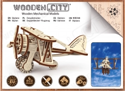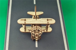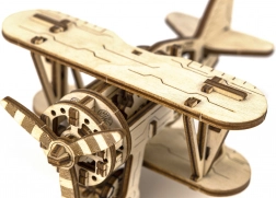 Lesena mehanska sestavljanka v obliki dvokrilnika ponuja edinstveno obliko in presenetljive podrobnosti. Z modelarsko natančnostjo se boste podali v zračna doživetja ob boku pionirjev letalstva, kot je Antoine de Saint-Exupéry. Ta model je poganjan z gumijastimi trakovi z nastavljivo pospeševanjem, ki zavrti propeler in omogoči letalu, da pospeši na ravni površini.