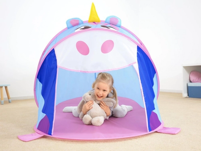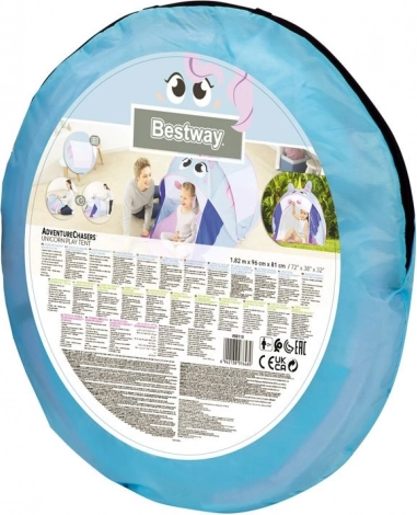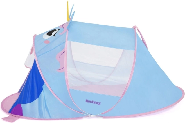 Prisrčen otroški pop-up šotor v obliki samoroga znamke BESTWAY spremeni vsako sobo, vrt ali plažo v pravljično kraljestvo. Zahvaljujoč hitremu samodejnemu postavljanju, lahkemu materialu in mrežastim okencem za zračenje je idealen za kreativno igro in počitek. Vložek na tleh zagotavlja čisto in udobno okolje, mere 182 × 96 × 81 cm pa nudijo dovolj prostora za igro in kratek počitek.