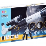 V paketu so trije okularji s približanjem 20x / 30x / 40x, nosilec za telefon s priseski za prikaz slike na zaslonu ter stabilno stojalo. Zunanja stran cevi je zaščitena z zaščitnim pokrovom, ki olajša vzdrževanje in ohranja optiko čisto.