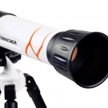 Otroški teleskop je odličen začetek v svet astronomije – spodbuja radovednost in omogoča udobno opazovanje Lune, zvezd ter tudi objektov na Zemlji. Refraktorski sistem s poševnim zrcalcem izboljšuje kontrast, zmanjšuje optične napake in nudi stabilno, pravilno orientirano sliko. Zaradi kompaktne dolžine in lahke zasnove ga zlahka postavite na mizo in v hipu pripravite za opazovanje.