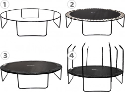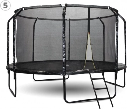 Skakalna površina iz kakovostnega polipropilena je večkrat prešita (do 8 šivov) in dopolnjena z oksidiranimi vzmetmi, ki so prekrite z zaščitnim robom. Stabilnost zagotavljajo U-noge z vijaki, nameščenimi z notranje strani konstrukcije, zato je zunanja stran gladka in varna. V paketu najdete tudi lestev, sidra s pritrdilnimi trakovi in vodoodporen pokrov za preprosto uporabo in vzdrževanje.
