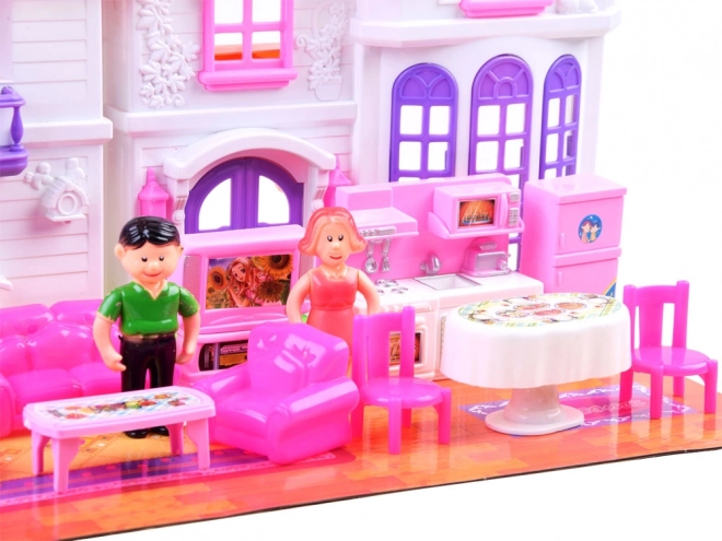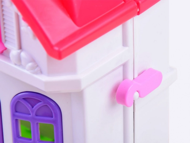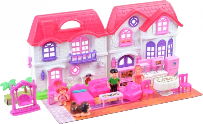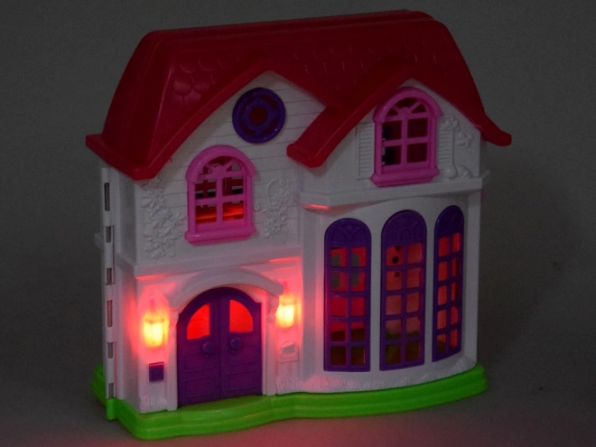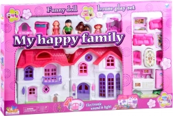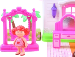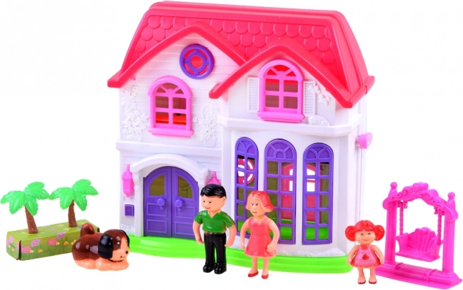 Zložljiva hišica očara z živahnimi barvami in dovršeno izdelavo – fasado krasijo reliefi cvetlic in ptičkov. Po odprtju nastane pregleden igralni prostor, kamor otroci zlahka razporedijo pohištvo. Figurice mamice, očka in hčerke imajo premične roke in vrtljivo glavo, zato boste uživali v številnih igrah vlog. Praktični zvonec s svetlobnim učinkom napove prihod obiskovalcev in igri doda čar pravega doma.