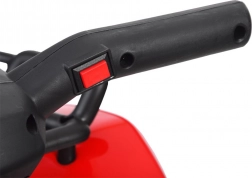Vožnjo zaženete s pritiskom na rdeči gumb na ročaju – idealno za majhne otroške roke in varne spelje brez zapletenega upravljanja.