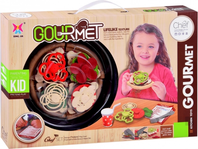 Pica je razdeljena na kose in jo je mogoče zlahka »rezati« s plastičnim kolescem. Otroci vadijo fino motoriko in doživijo realistično pripravo jedi.