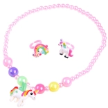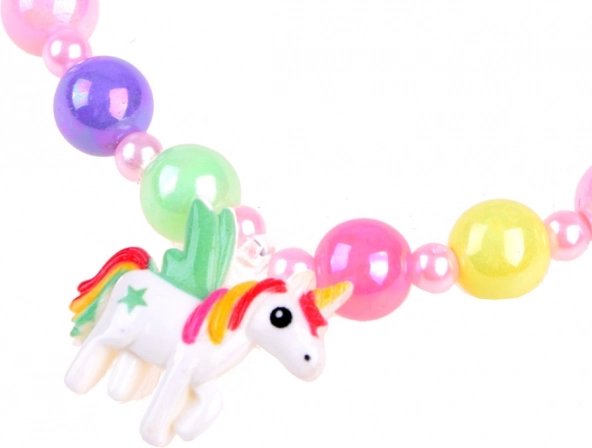Barvna ogrlica iz kroglic s prikupnim obeskom samoroga in dva prstana dovršita kostum ter spodbudita čarobno igro.