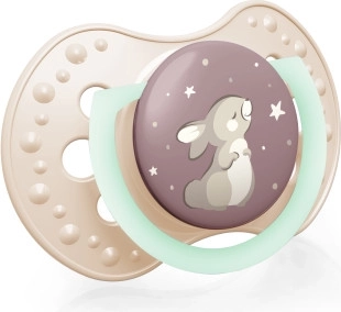 - Simetrična oblika, navdihnjena z materino bradavico, omogoča vstavljanje dudo na katerikoli način.