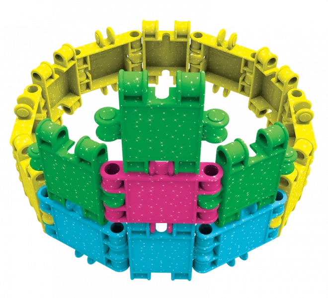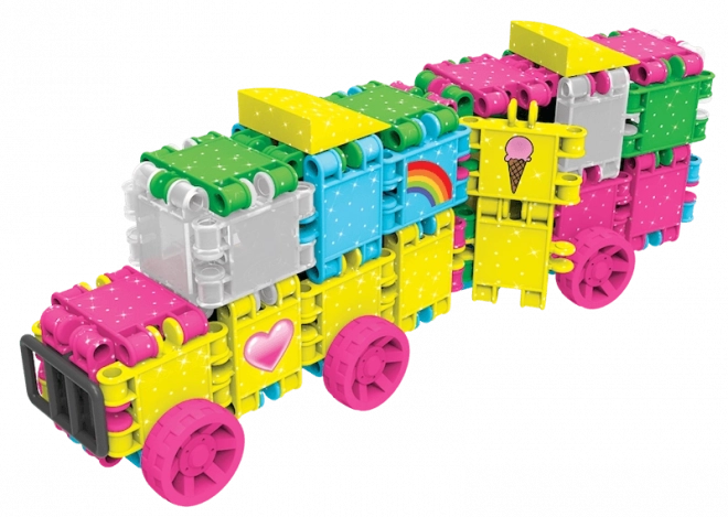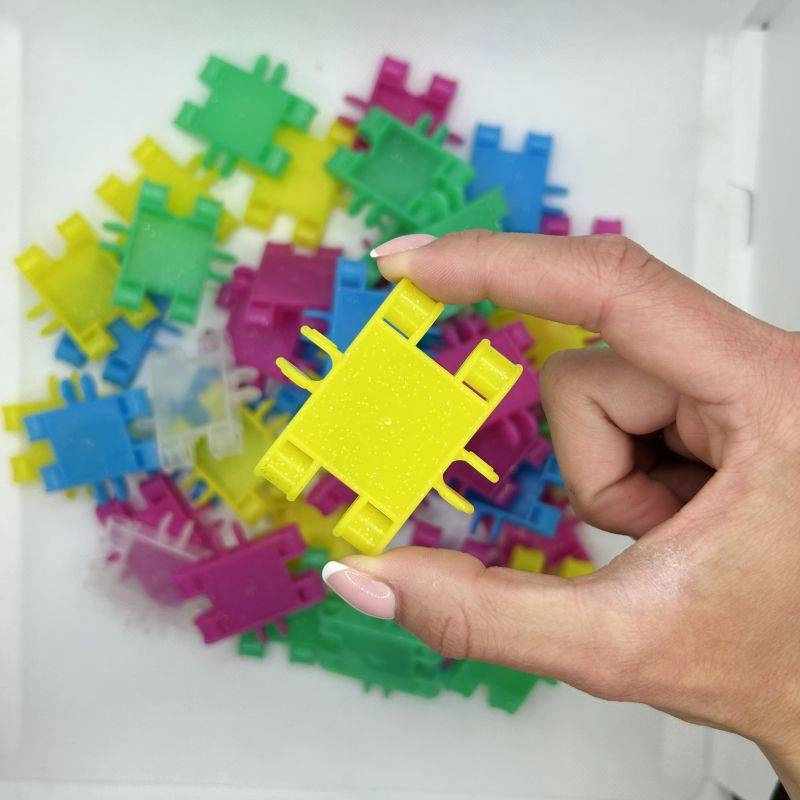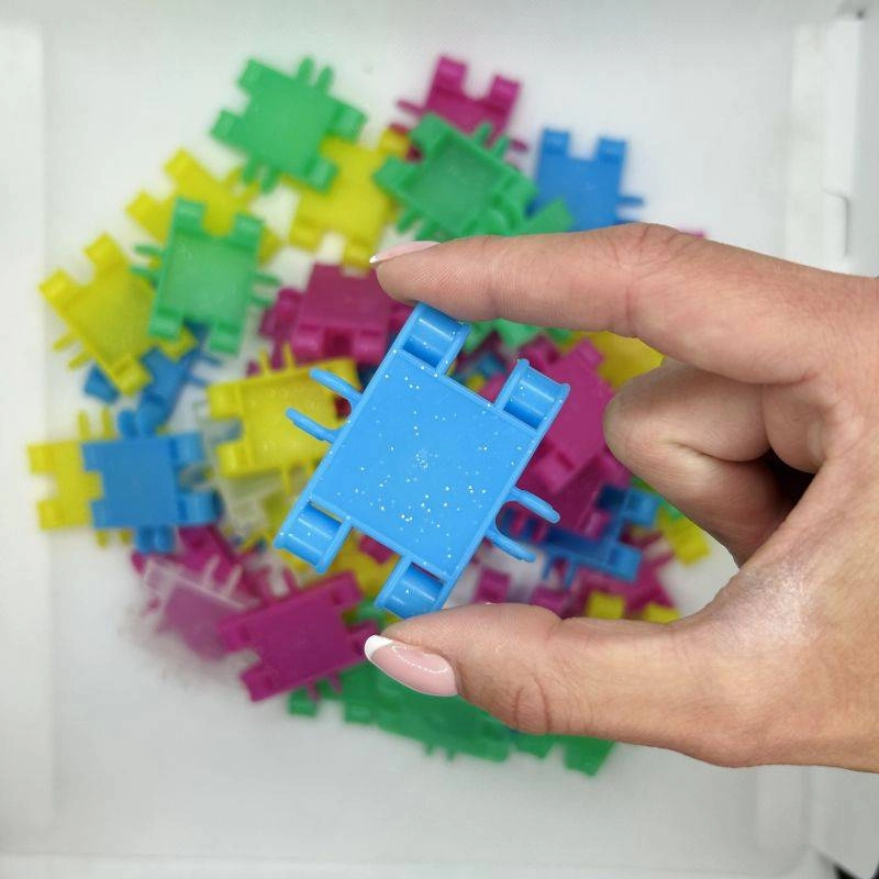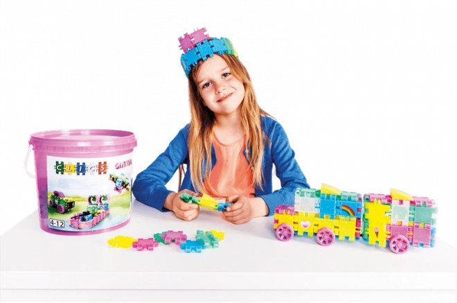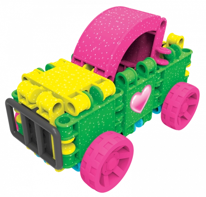 Bleščeča izdaja CLICS GLITTER prinaša žive barve in enostavno povezovanje, ki otroke takoj pritegne. Iz 175 kosov ustvarite ljubke modele, kot so kužek, torbica, letalo, avtomobilček ali domišljijske figurice. Trpežni zaskočni spoji ohranijo obliko, hkrati pa omogočajo neskončno predelovanje.