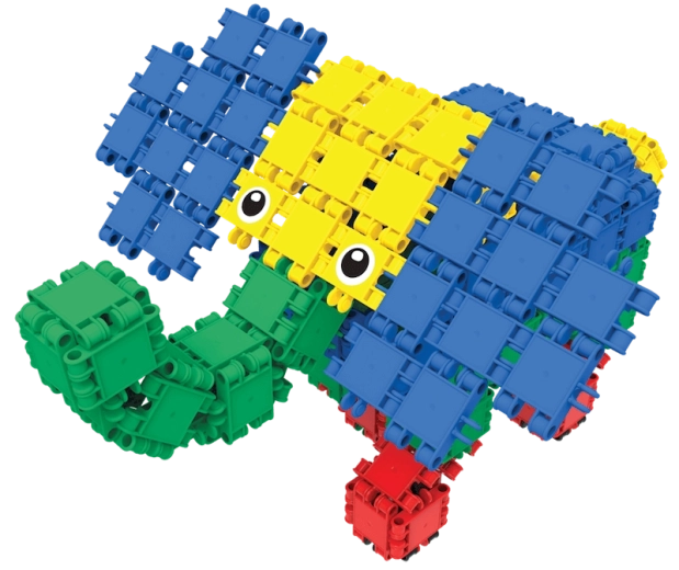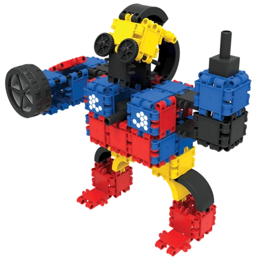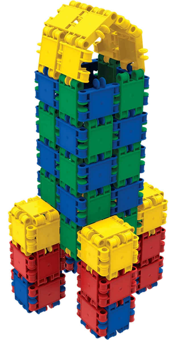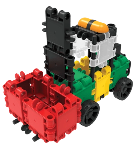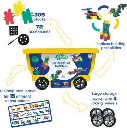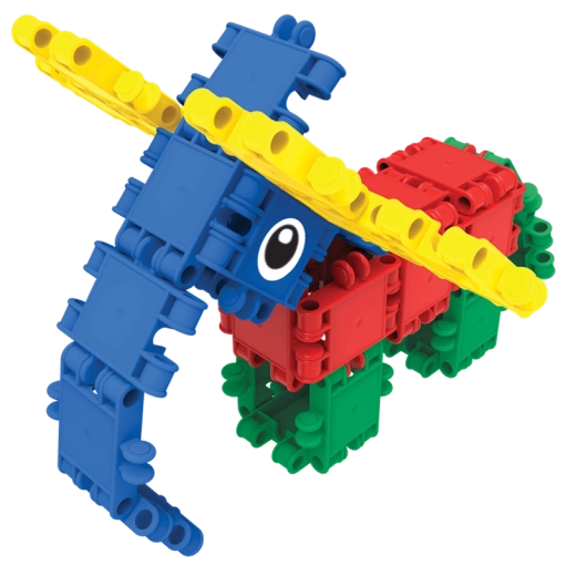 Zgradite vozila, živalice, robote ali hiške po načrtih ali lastni domišljiji. Veliki, barviti kosi spodbujajo igro in učenje.
