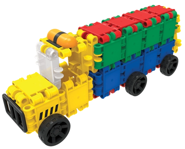 Edinstveni sistem CLICS omogoča hitro spajanje in stabilne modele, ki prenesejo otroško igro. Razstavljanje je preprosto tudi za mlajše otroke.