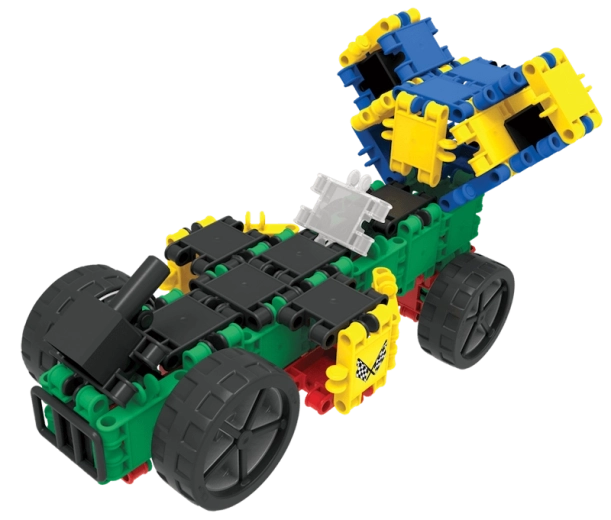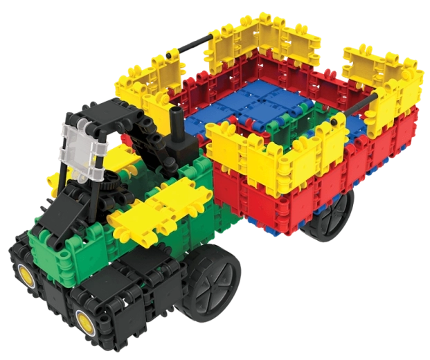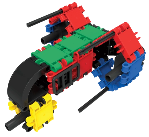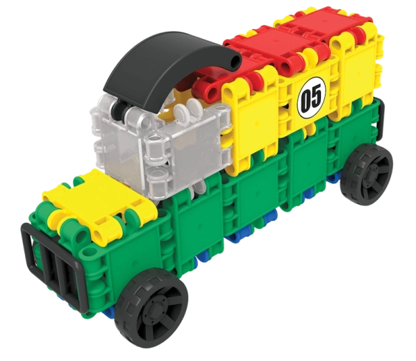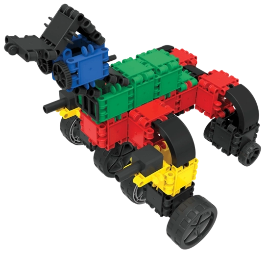 Zgradite vozila, živali in fantazijske stroje. Široka paleta oblik in barv spodbuja ustvarjalno igro in raznolikost gradenj.