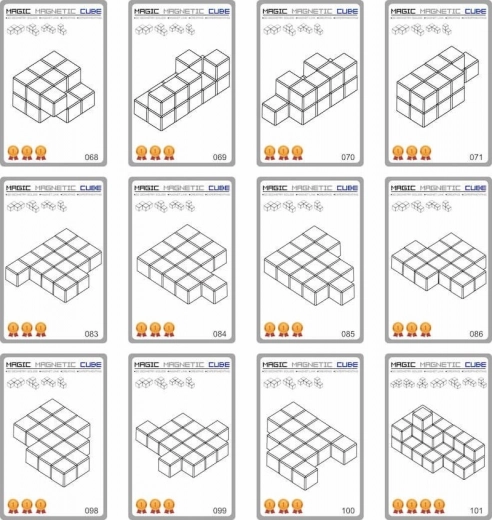 Zahvaljujoč magnetom se kocke enostavno povezujejo in omogočajo ustvarjanje širokega spektra modelov s pomočjo 52 navodilnih kart.