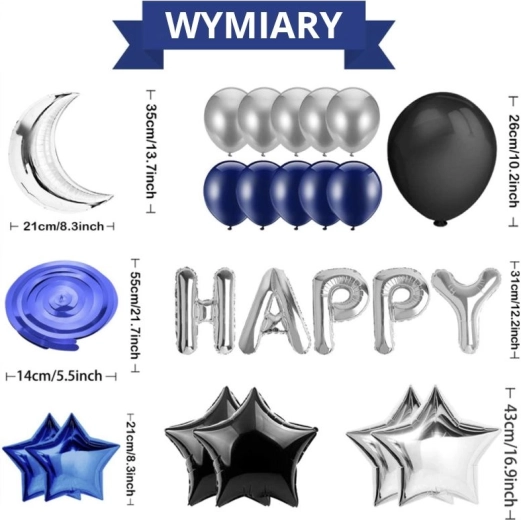 Ta rojstnodnevni komplet balonov vam omogoča okrasitev zabave, ki bo ustvarila posebno in edinstveno vzdušje. Zaradi izvirne dekoracije bo zabava nepozabna ne le za slavljenca ali slavljenko, temveč tudi za vse udeležence. Komplet rojstnodnevnih balonov je idealen za praznovanje doma ali na prostem. Komplet ustvari čudovito ozadje za spominske fotografije.